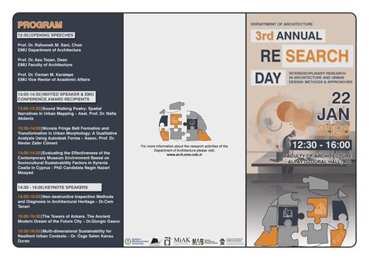 We are excited to invite you to the 3rd annual Research Day of the Department of Architecture, EMU on 22nd of January 2026
